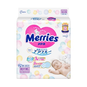 花王妙而舒Merries婴儿纸尿裤 NB90片(出生-5kg)新生儿小号婴儿尿不湿(日本进口)纸尿片