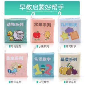 育儿宝 婴儿布书可咬撕不烂宝宝玩具五七个月0-1岁早教益智礼物 六本组合盒装