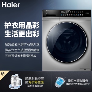 海尔(Haier)晶彩系列 10KG变频滚筒洗衣机全自动 洗烘一体 晶彩触控屏EG100HBDC7SU1