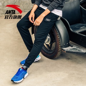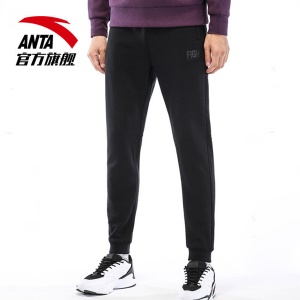 安踏 ANTA 官方旗舰运动裤男卫裤收口小脚加绒长裤秋冬男裤子 基础黑-3 L(男175)