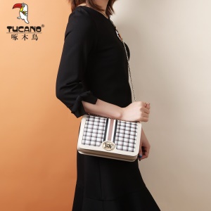 啄木鸟(TUCANO)女包包时尚单肩包格纹链条包女斜挎包百搭大气女士包包潮