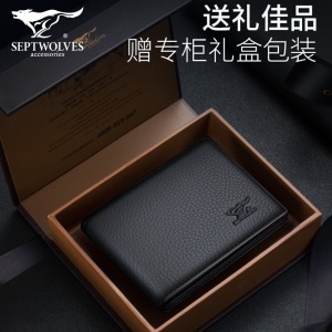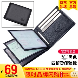 七匹狼驾驶证皮套男士多功能卡包真皮驾照保护卡套一体机动车证件 四折黑色-官方直售保障
