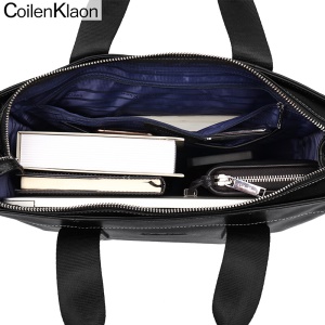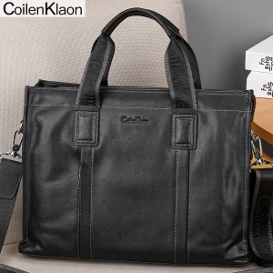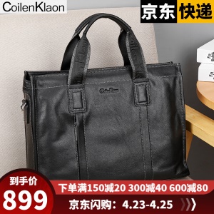 CoilenKlaon公文包男头层牛皮办公商务包真皮男士手提包电脑公务手拎包休闲皮包大容量男包 黑色CK130