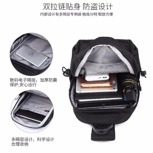 墨一 斜挎包男单肩包潮牌简约男士胸包新款韩版休闲背包帆布斜跨包学生运动潮流小腰包 酷黑色升级款