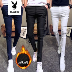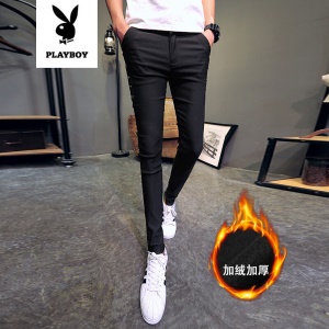 花花公子休闲裤男网红修身小脚裤子男韩版修闲裤弹力快手紧身裤潮流裤子 有加绒款的 黑色加绒加厚 28