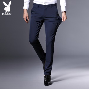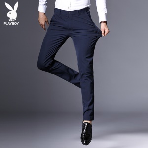 花花公子休闲裤男 春季新款纯棉纯色免烫弹力直筒裤子男潮裤子 M1183203儒雅蓝 36