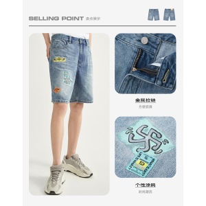 GXG男装2020年夏季浅蓝色牛仔短裤#GB125188C 浅蓝色 170/M