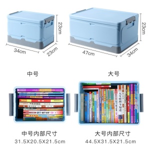 可折叠收纳箱车内车载收纳箱塑料书箱装书收纳盒学生宿舍放书籍整理箱折叠收纳筐玩具汽车后备箱储物箱 蓝色 中号 34.5*23.5*23cm