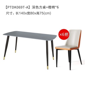 顾家家居 一桌六椅 岩板极简意式现代简约方餐桌 PTDK069T 15天发货 深色方桌+橙色椅子*6