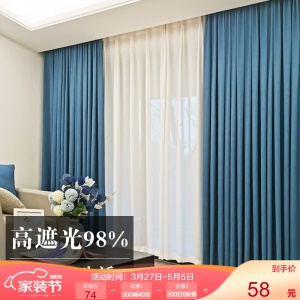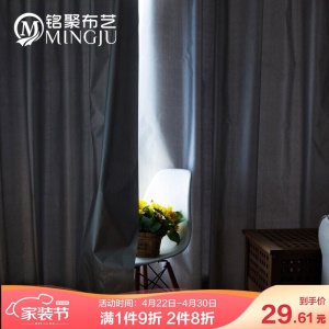 灵水绣简约北欧风隐竹节棉麻质感全遮光遮阳窗帘布 现代客厅卧室飘窗阳台 隔音隔热加厚高遮光窗帘成品定制 98%遮光率-蓝灰色窗帘(加厚隐竹节款) 定制挂钩式1米(联系卖家)