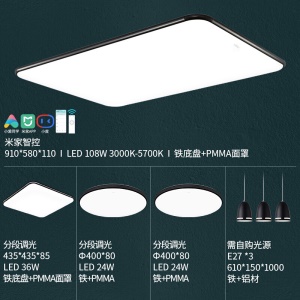 雷士(NVC)led吸顶灯北欧现代简约客厅卧室书房餐厅超薄灯具 108W遥控调光客厅灯饰 极光灯具套餐