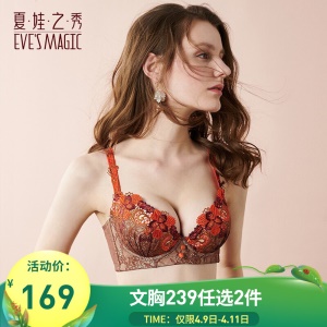 【商场同款】夏娃之秀文胸 花朵刺绣软钢圈小胸聚拢上托性感蕾丝女士内衣 锗栗色 70A=32A上薄下厚杯