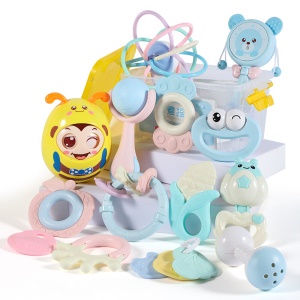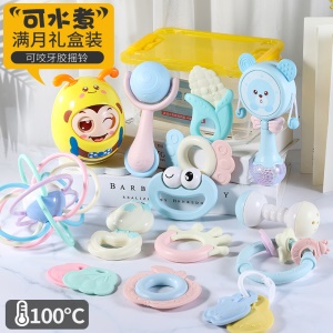 育儿宝 婴儿玩具0-1岁新生儿手摇铃铛可咬牙胶宝宝婴幼儿童四六个月 可水煮抓握摇铃【收纳盒装】+不倒翁+牙胶球+拨浪鼓