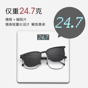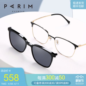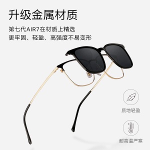 近视眼镜女磁吸墨镜夹片一镜两用派丽蒙新品偏光近视墨镜时舒适轻便眼镜框男 81606 K1-主框:金/黑色;吸镜:黑