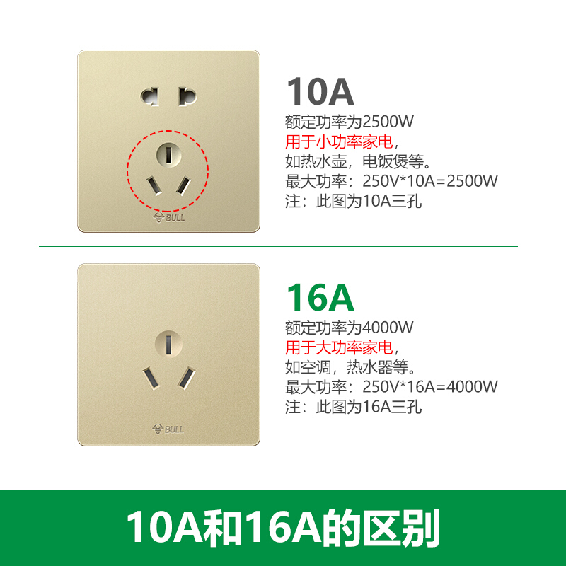 商品名称:公牛(BULL) 开关插座 G12系列 10A五孔插座二三极连体插座86型暗装大面板插座G12Z223 香槟金