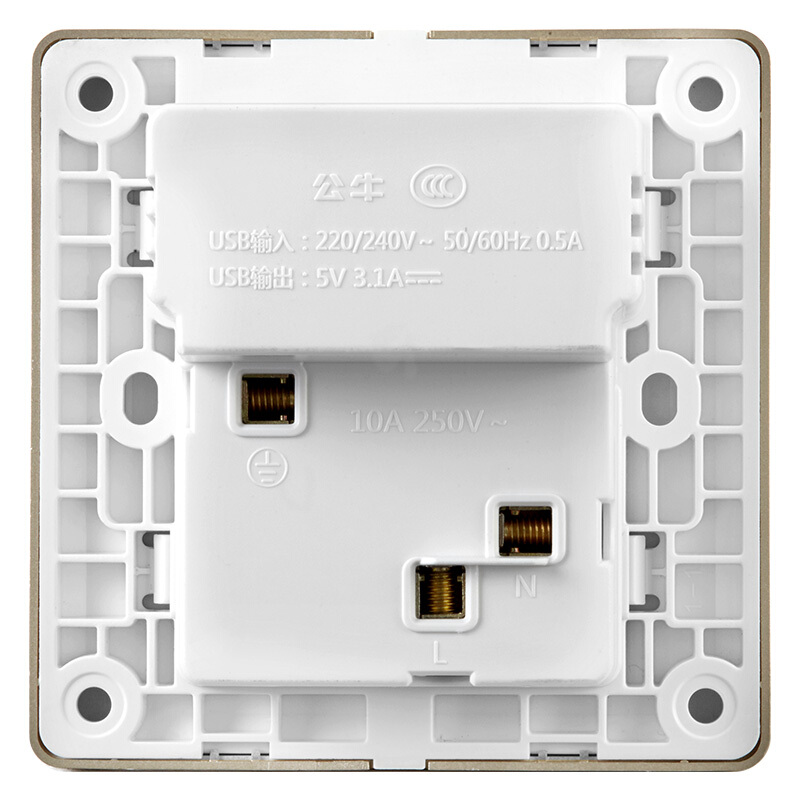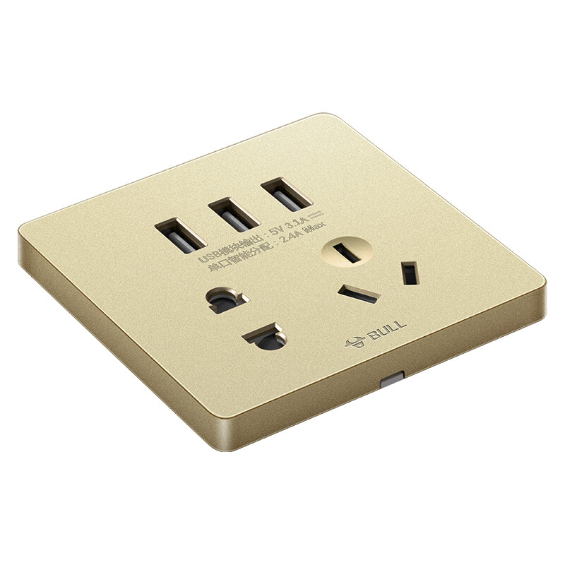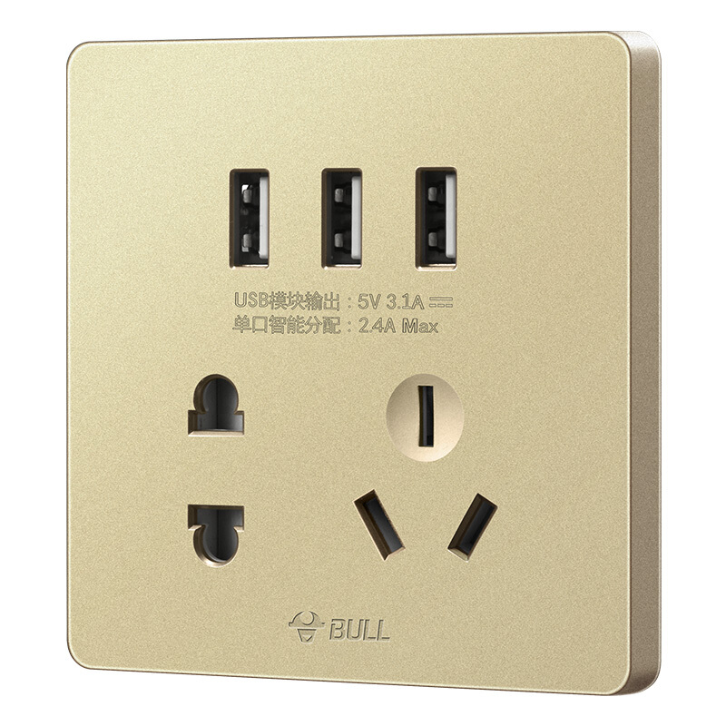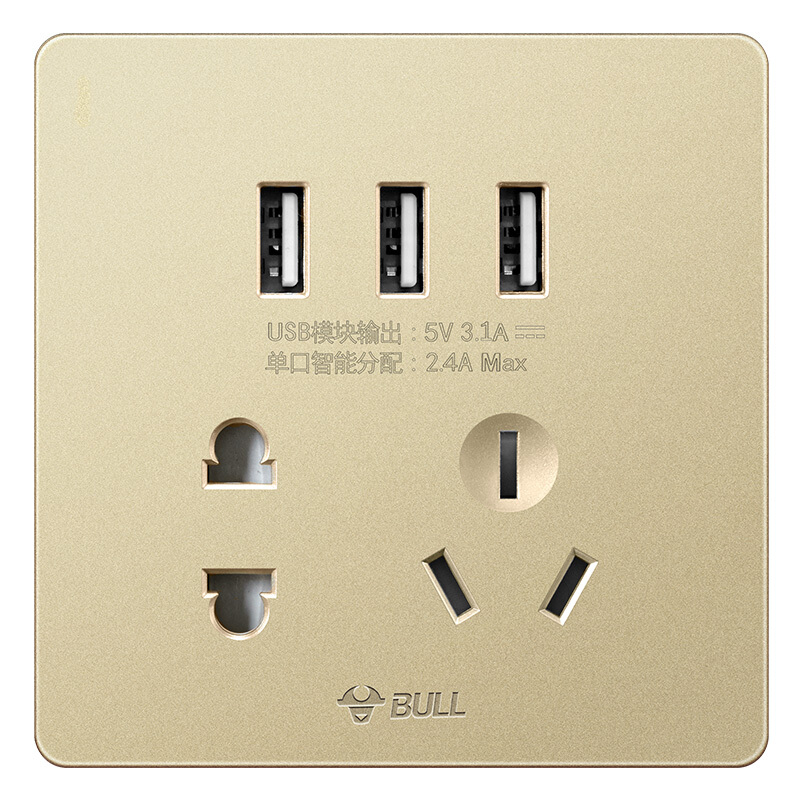 商品名称:公牛(BULL) 开关插座 G12系列 五孔带3位USB接口插座86型暗装面板插座G12E536 香槟金