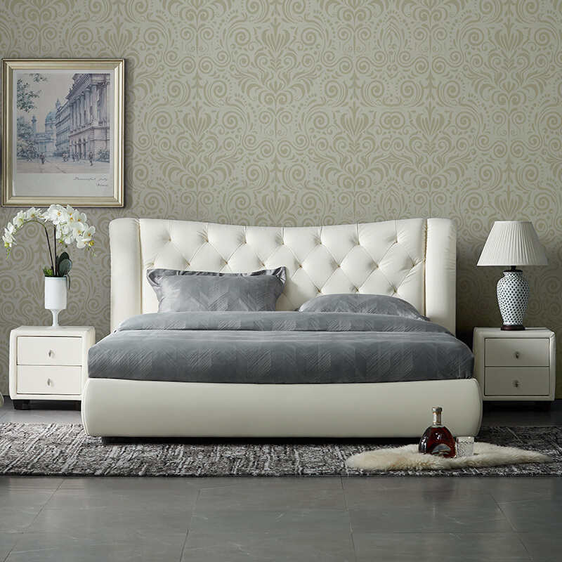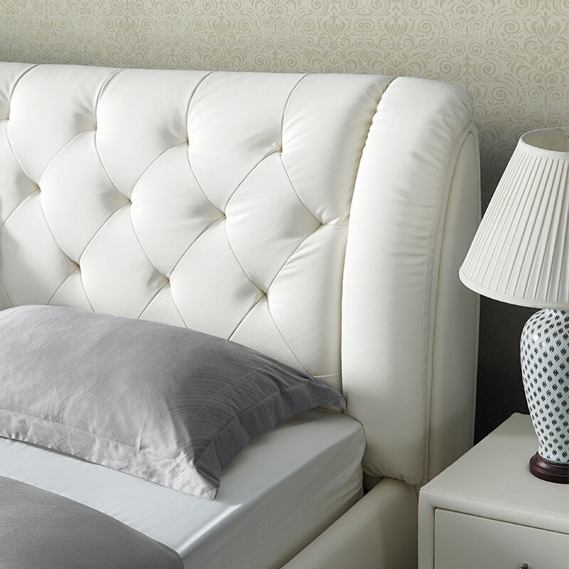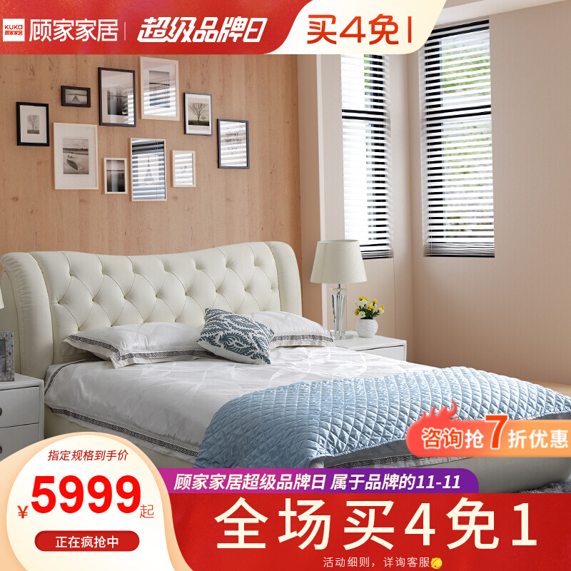 顾家家居 皮床 头层牛皮双人床结婚床软床卧室家具DK.B118【30天发货】 本白色【含排骨架】 1800*2000