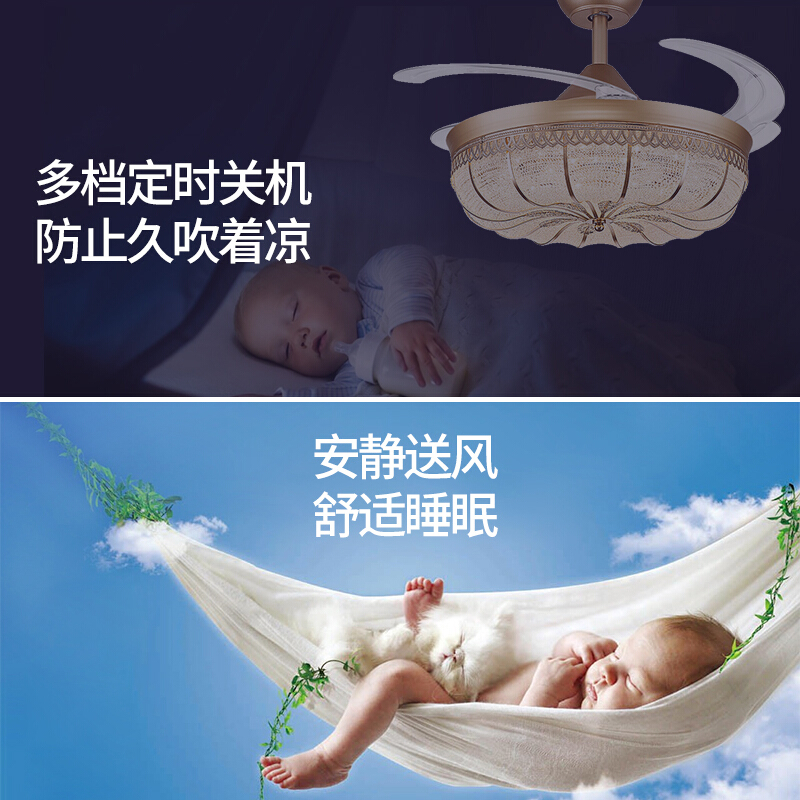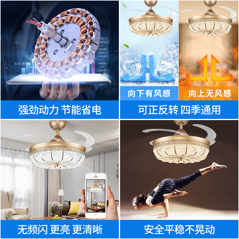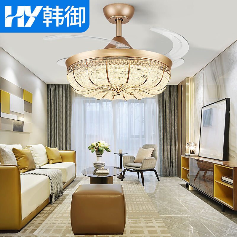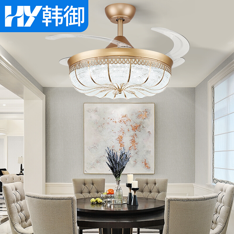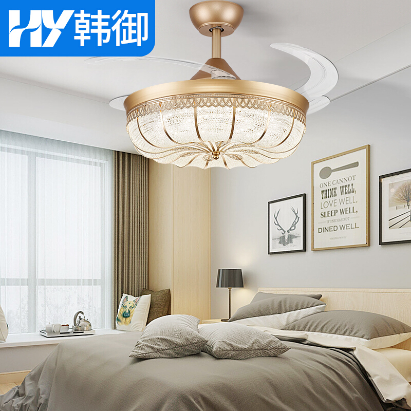 韩御轻奢灯带电风扇 隐形风扇灯客厅餐厅卧室吊扇灯 饭厅带灯吊扇电扇电灯扇 家用一体带风扇的吊灯 42寸-金色南瓜 LED变光 遥控 轻奢