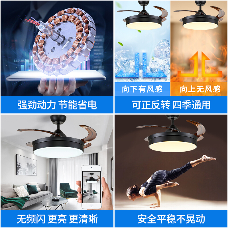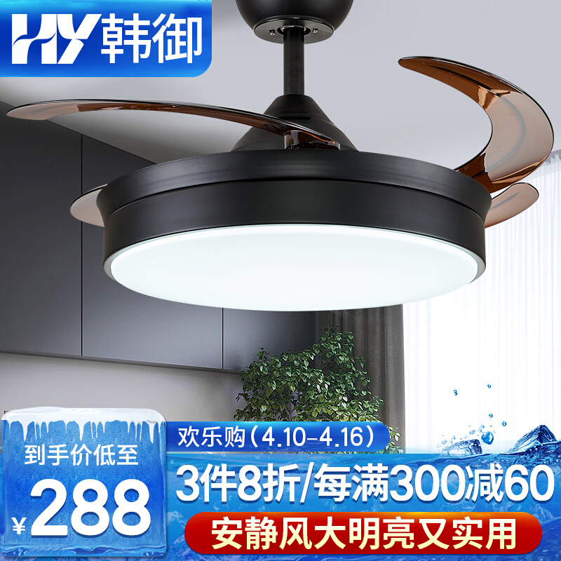 商品名称:韩御吊灯风扇 隐形风扇灯客厅餐厅吊扇灯 饭厅带灯电灯扇 卧室灯带电扇 家用灯扇一体带风扇的电风扇吊灯 36寸-尊贵黑 LED变光 遥控 时尚