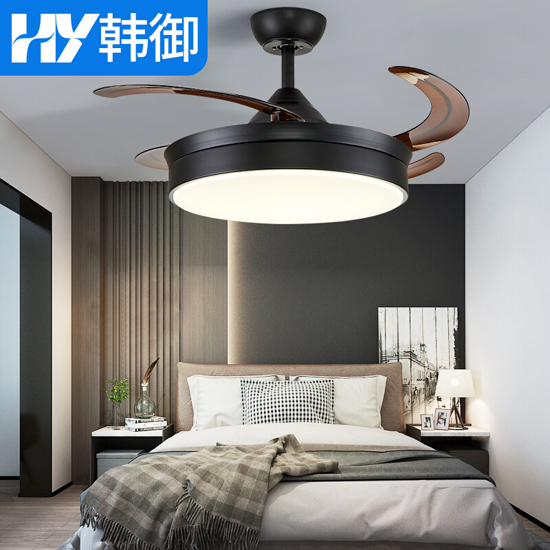韩御吊灯风扇 隐形风扇灯客厅餐厅吊扇灯 饭厅带灯电灯扇 卧室灯带电扇 家用灯扇一体带风扇的电风扇吊灯 36寸-尊贵黑 LED变光 遥控 时尚