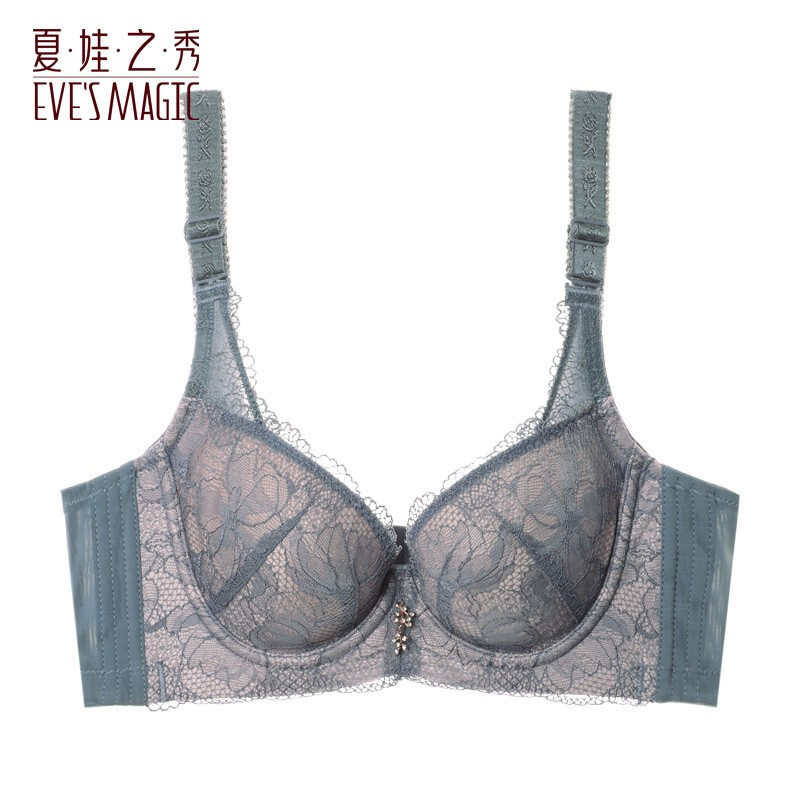 商品名称:夏娃之秀女士内衣上薄下厚文胸性感蕾丝软钢圈3/4杯小胸胸罩3675 灰蓝 80A