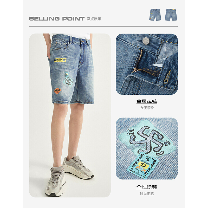 GXG男装2020年夏季浅蓝色牛仔短裤#GB125188C 浅蓝色 170/M