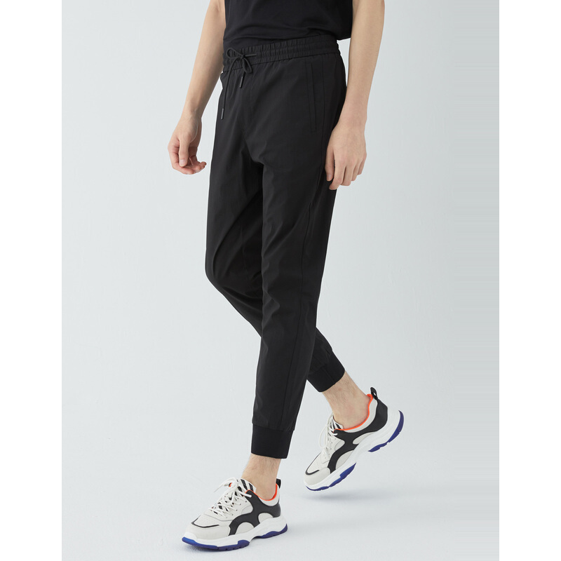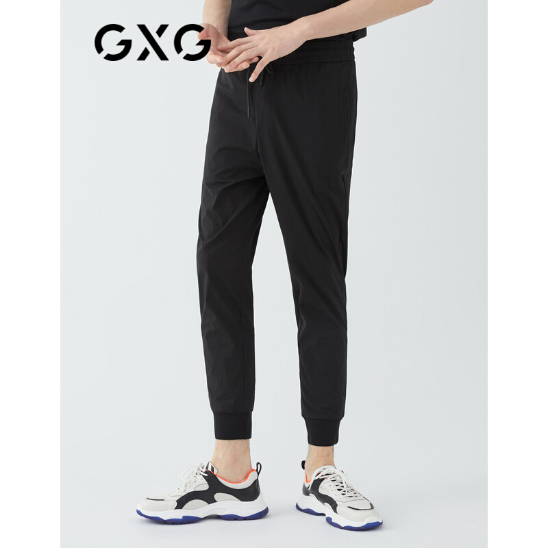 GXG男装夏季韩版直筒黑色休闲裤束脚裤潮牌男 黑色 165/S