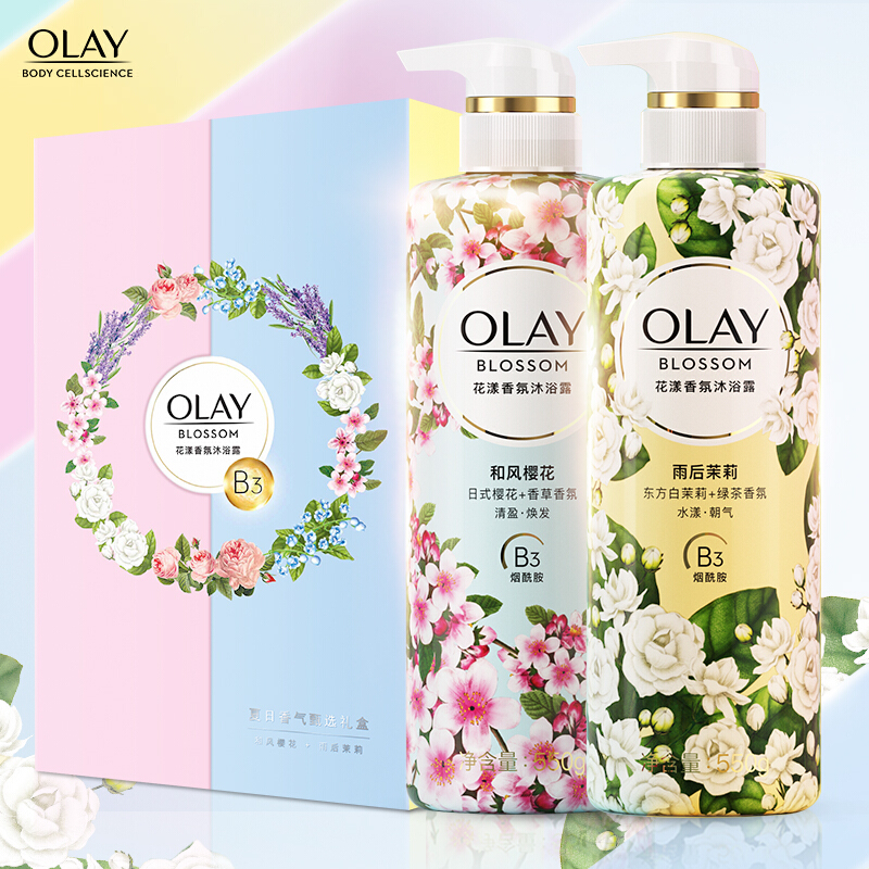 玉兰油OLAY花漾香氛小花瓶沐浴露和风樱花550g+雨后茉莉550gb3烟酰胺