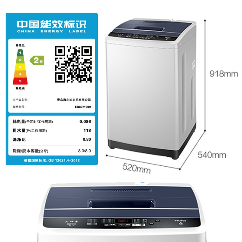 - 商品名称:海尔(Haier) 波轮洗衣机全自动 8KG健康桶自洁 一键智能洗 租房神器 EB80M009