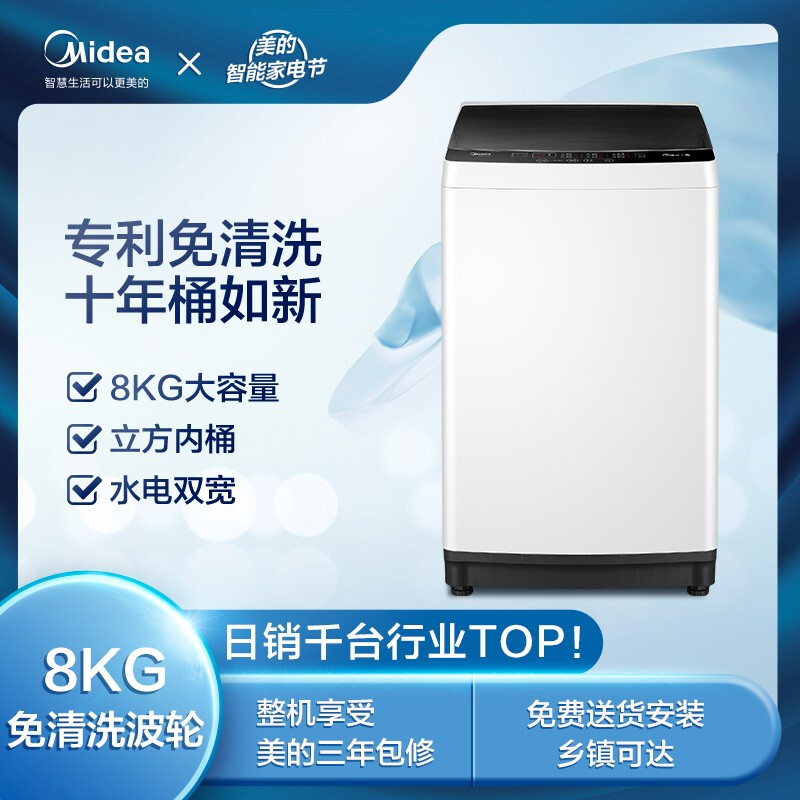 - 商品名称:美的 Midea 波轮洗衣机全自动 8公斤专利免清洗十年桶如新 立方内桶 水电双宽 MB80ECO1