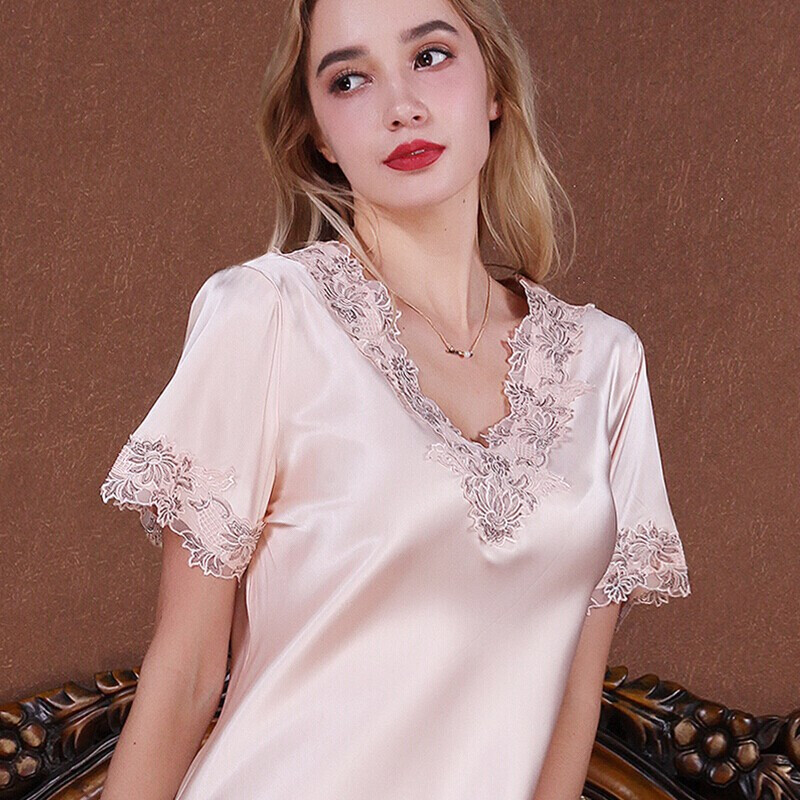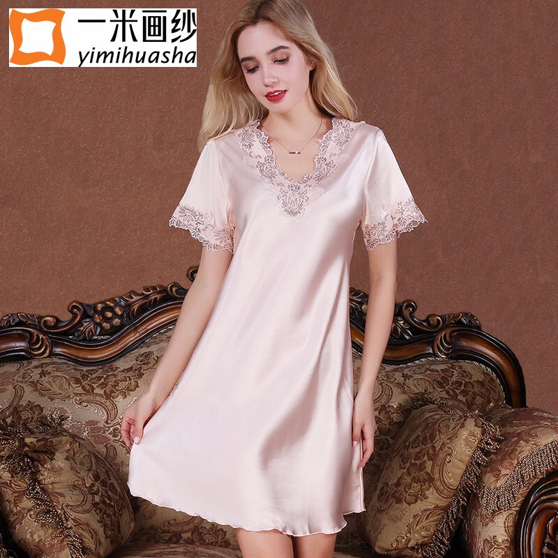 商品名称:一米画纱睡衣女夏季仿真丝短袖睡裙性感休闲家居服薄款冰丝 8003米色 XL