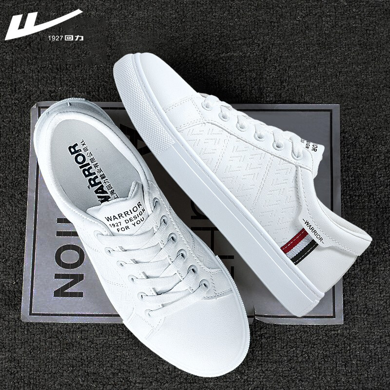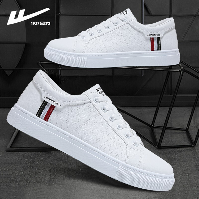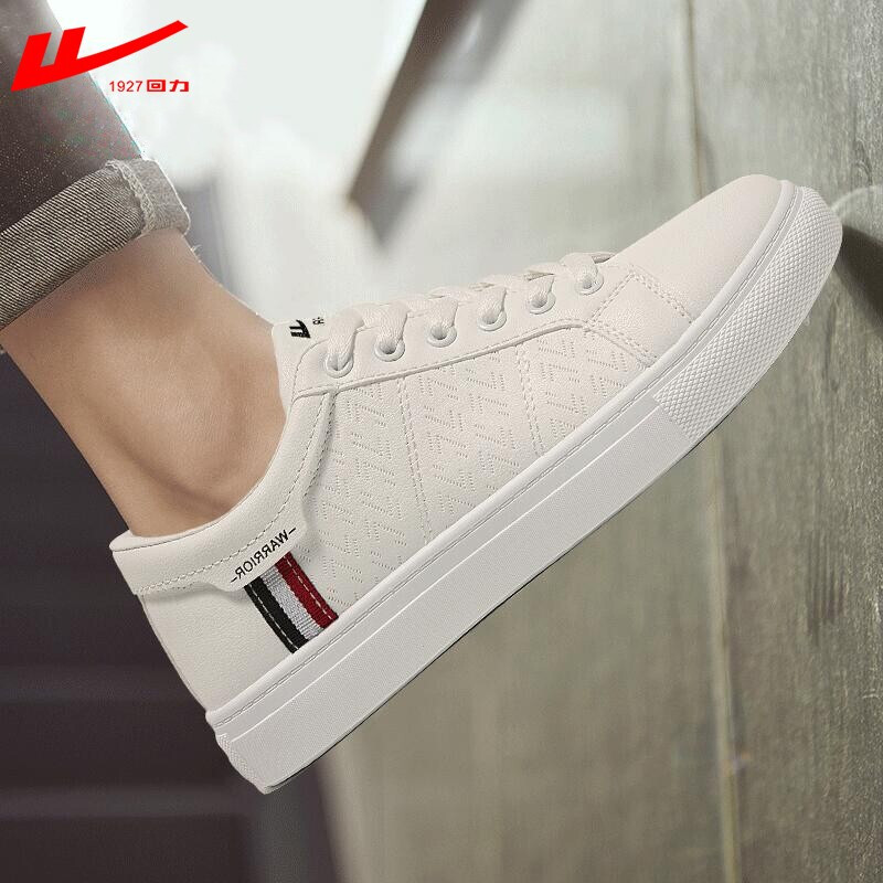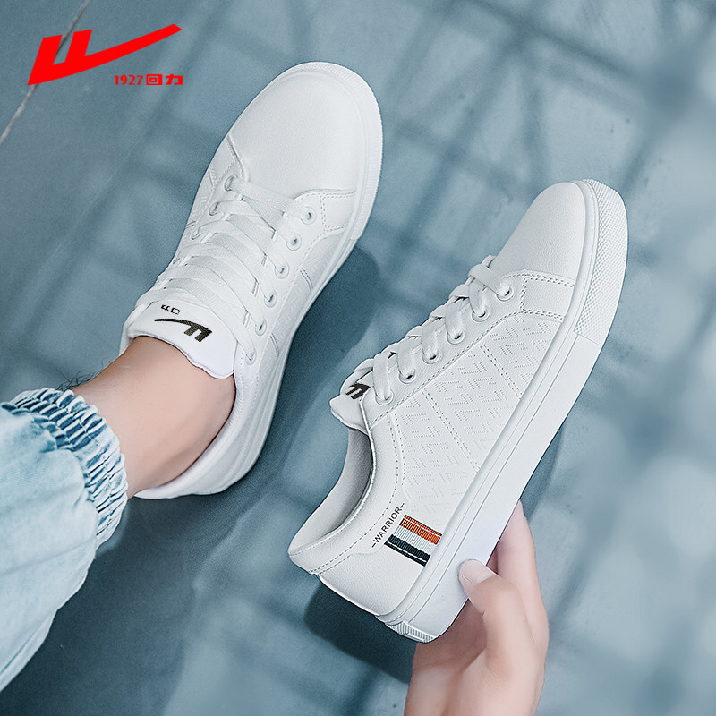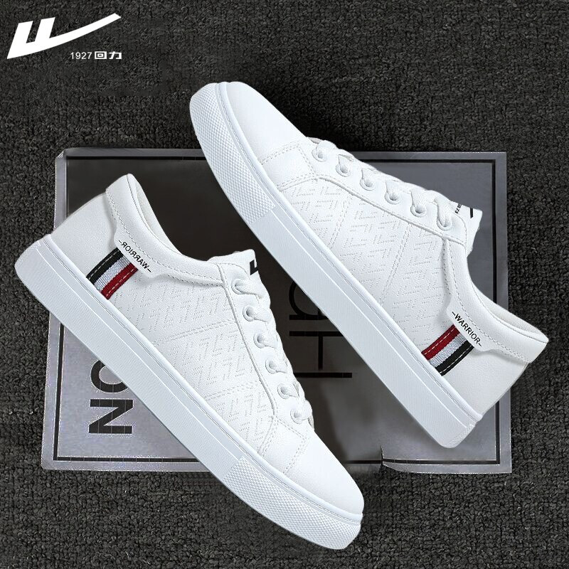 回力小白鞋男士2021春夏季皮面休闲鞋运动板鞋男款百搭情侣潮流白色韩版男鞋子 白黑 42脚瘦买正码,脚宽请买大一码