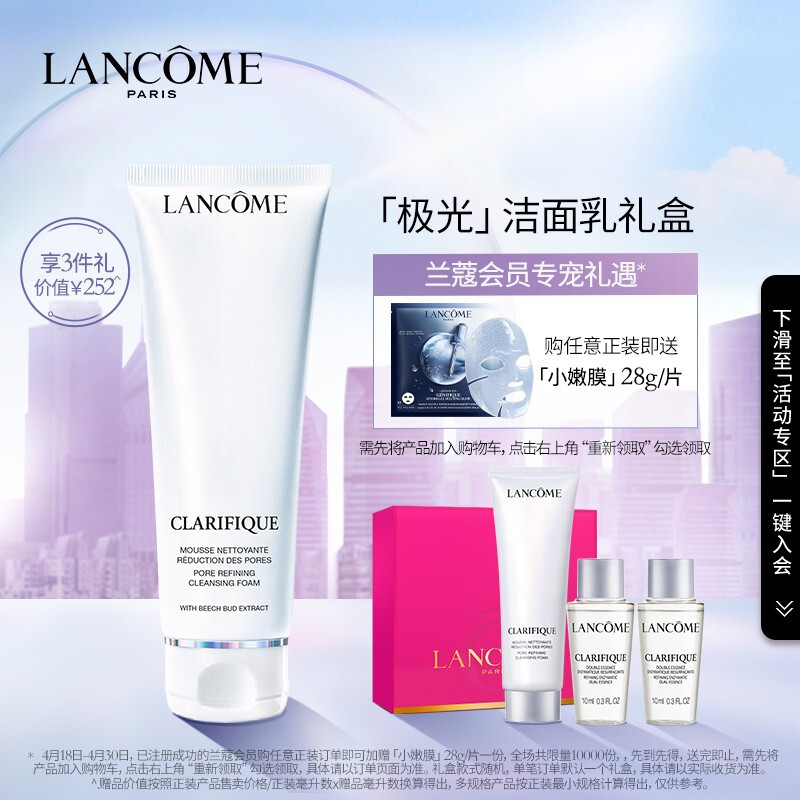 兰蔻(LANCOME)净澈焕肤洁面乳 125ml 极光洁面 氨基酸 温和清洁 护肤礼盒