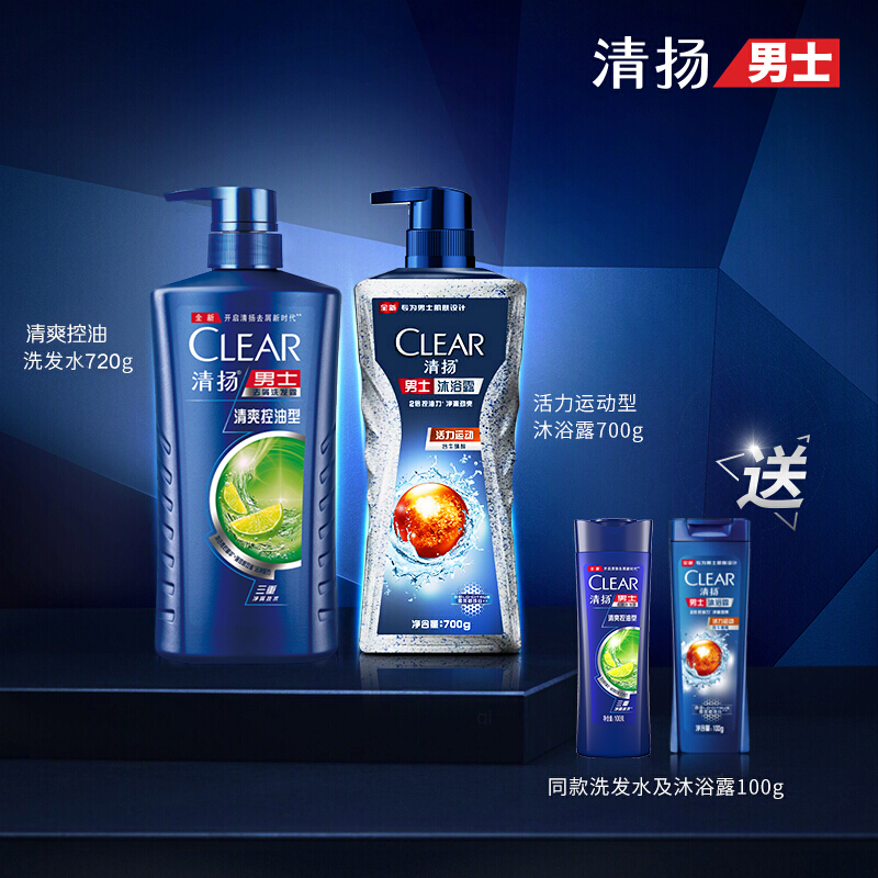 清扬(CLEAR)洗发水沐浴露套装活力运动沐浴露700gx1清爽控油型洗发露720gx1活力运动沐浴露100gx1清爽控油洗发露100gx1