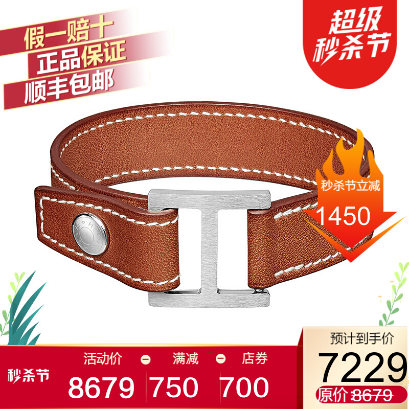 商品名称:爱马仕(Hermes)新款女士手环 皮革 镀钯H字母配件 H071830CB34T4代购 T4