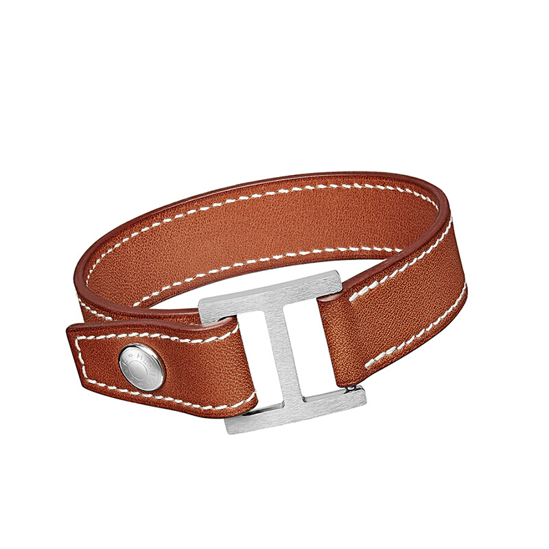 爱马仕(Hermes)新款女士手环 皮革 镀钯H字母配件 H071830CB34T4代购 T4