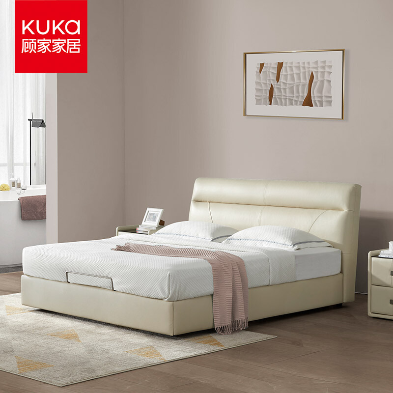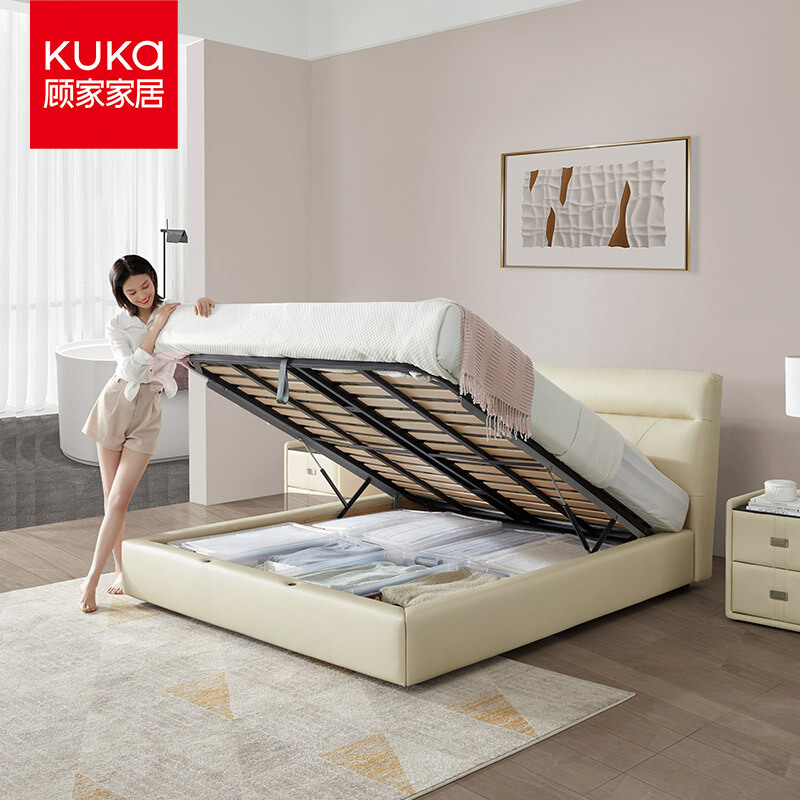 顾家家居 KUKA 真皮皮床 简约现代卧室双人床 15天发货 DK.B168 1.8m 米黄色 储物款