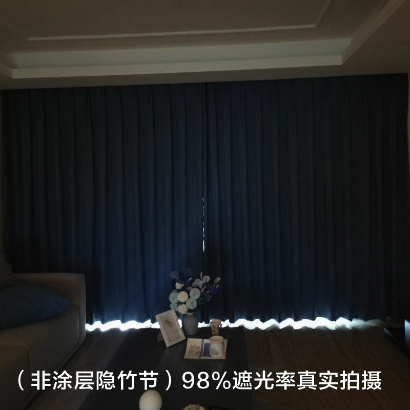 灵水绣简约北欧风隐竹节棉麻质感全遮光遮阳窗帘布 现代客厅卧室飘窗阳台 隔音隔热加厚高遮光窗帘成品定制 98%遮光率-蓝灰色窗帘(加厚隐竹节款) 定制挂钩式1米(联系卖家)