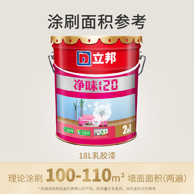 立邦漆 净味120二合一无添加油漆涂料内墙乳胶漆墙面漆18L