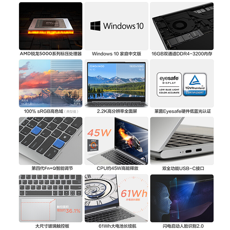 - 商品名称:联想小新Pro14 高性能轻薄本 14英寸全面屏笔记本电脑(8核R7-5800H 16G 512G 2.2K 低蓝光护眼屏 )标压锐龙版