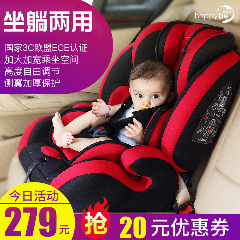 贝蒂乐汽车儿童安全座椅0-4-12岁宝宝婴儿小孩车载安全椅可坐躺简易折叠便携增高垫 红黑色