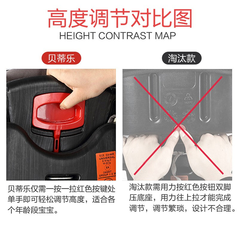 商品名称:贝蒂乐汽车儿童安全座椅0-4-12岁宝宝婴儿小孩车载安全椅可坐躺简易折叠便携增高垫 红黑色