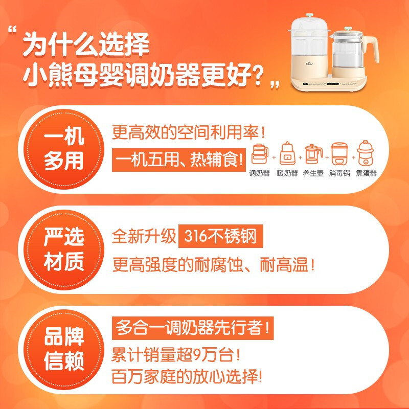 商品名称:小熊(Bear)恒温水壶 调奶器1.2L 温奶器 奶瓶消毒器带烘干 暖奶热奶器蒸食消毒锅五合一 TNQ-C12G1