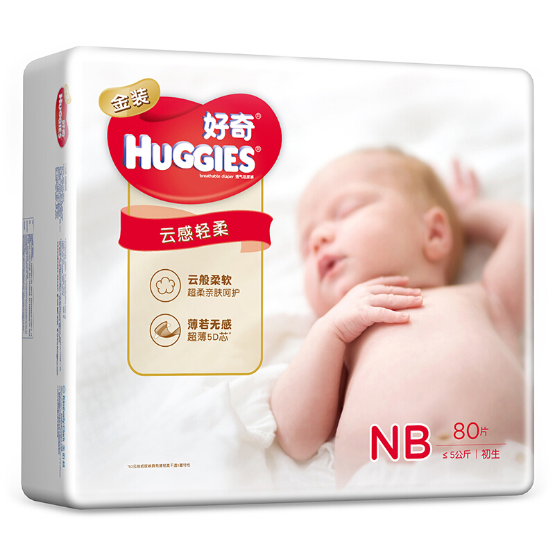 好奇Huggies金装纸尿裤NB80片(5kg以下)新生儿小号婴儿尿不湿超薄云朵柔软超大吸力超薄透气