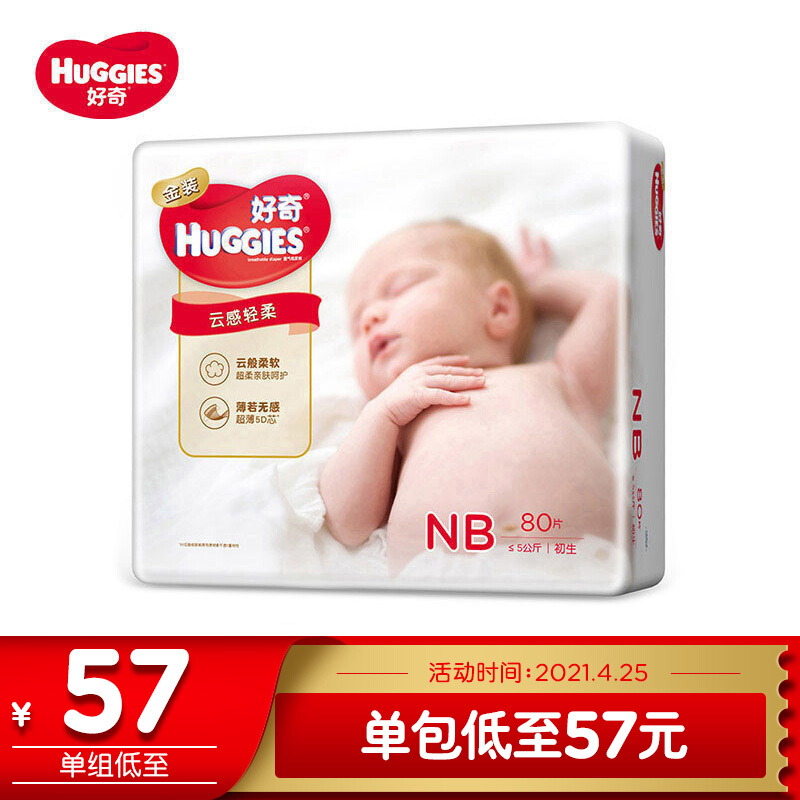 商品名称:好奇Huggies金装纸尿裤NB80片(5kg以下)新生儿小号婴儿尿不湿超薄云朵柔软超大吸力超薄透气