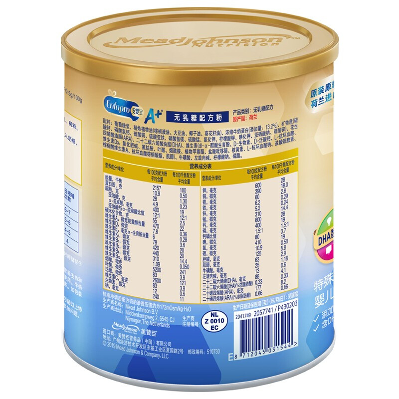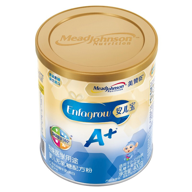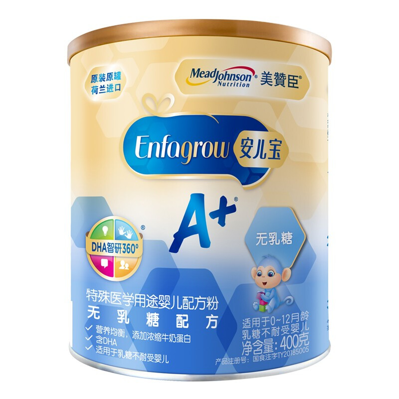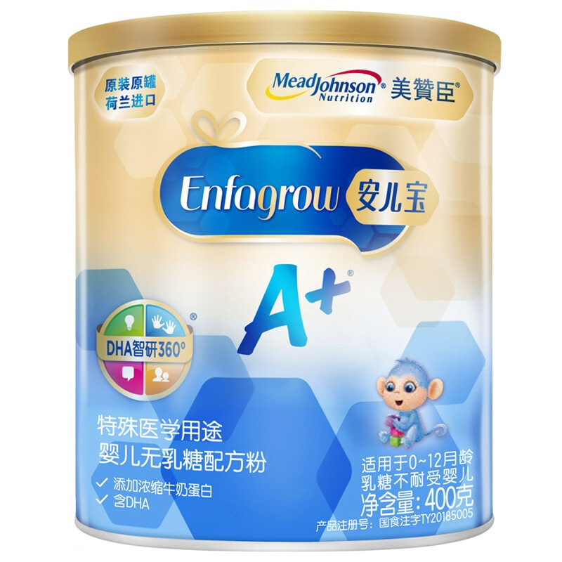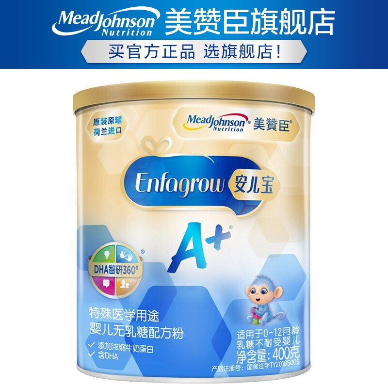 商品名称:美赞臣 安儿宝A+ 无乳糖奶粉0-12个月宝宝乳糖不耐受特殊医学用途婴儿配方腹泻奶粉400g