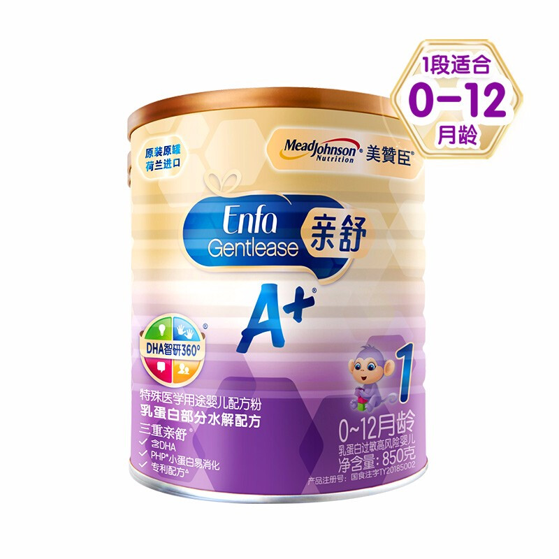 美赞臣A+亲舒婴儿配方奶粉 1段850g(0-12个月) 原装进口 乳蛋白部分水解 新旧包装随机发货