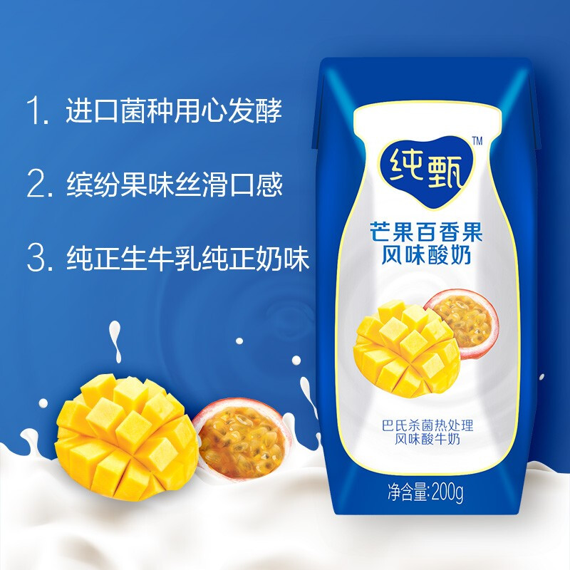 商品名称:蒙牛 纯甄 常温风味酸牛奶 芒果百香果口味 送礼 200g*16 礼盒装