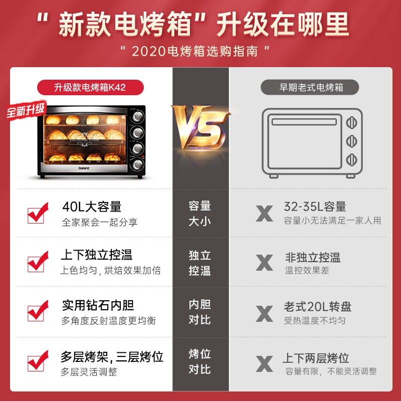 商品名称:格兰仕(Galanz) 电烤箱 家用40L大容量K41/K42 烘焙多层烤箱 可视炉灯上下独立控温 品牌精选款