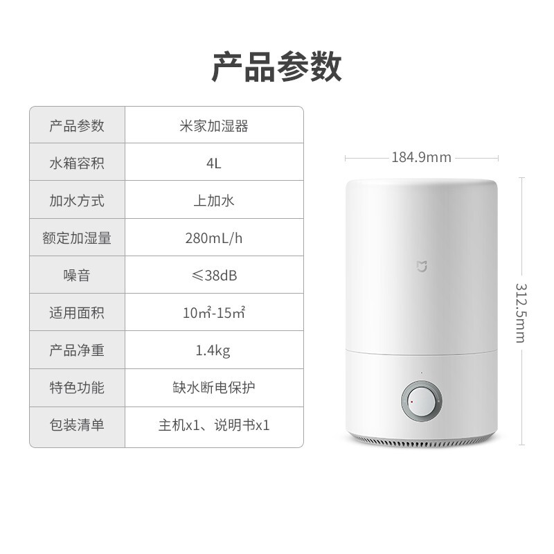 商品名称:米家 小米加湿器卧室家用办公室桌面 迷你低噪空气加湿 银离子材料 上加水 4L大容量
